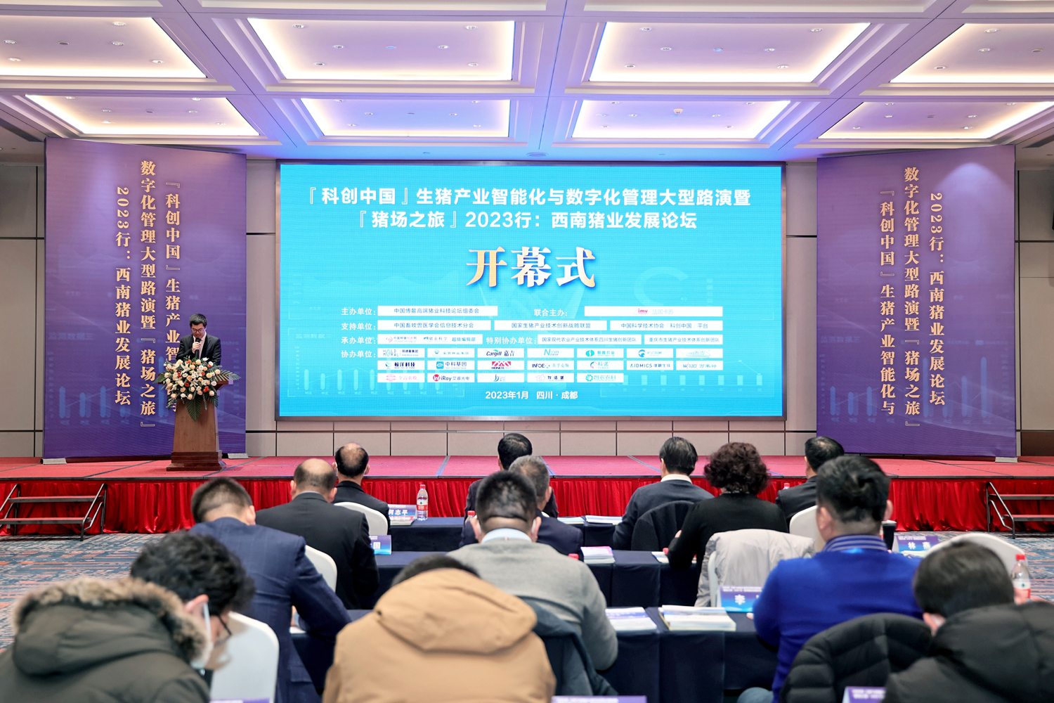 2023年剛剛來到,豬業界已迎來首場行業會議。1月9日,“『科創中國』生豬產業智能化與數字化管理大型路演暨『豬場之旅』2023行:西南豬業發展論壇”在四川成都渝江飯店隆重開幕,讓全國200余位養豬界高手共聚一堂。